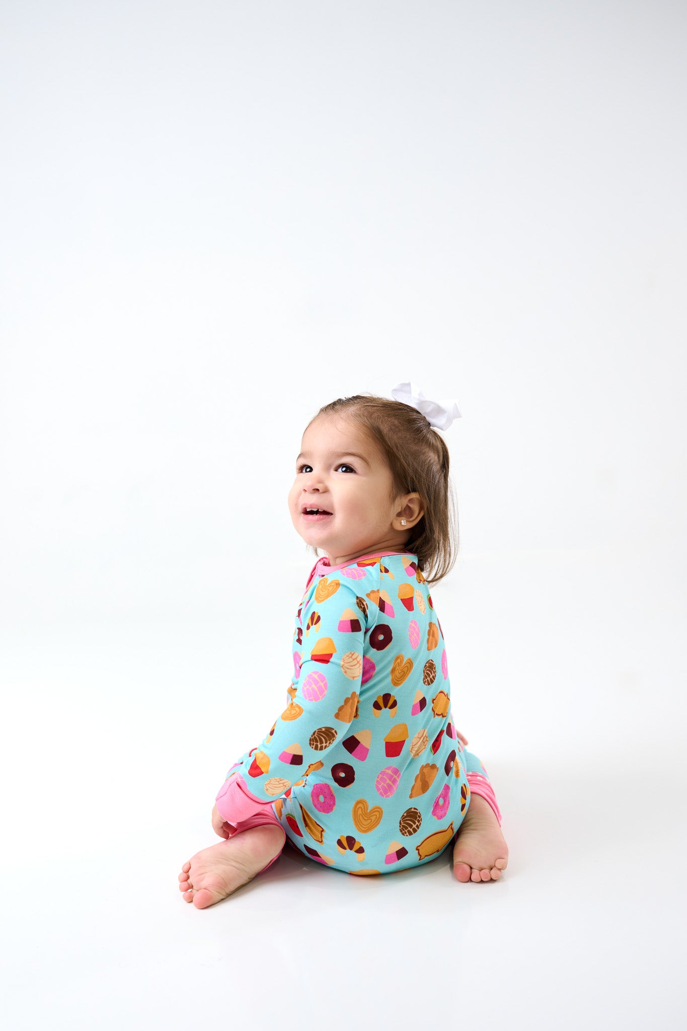 Snuggle your baby in our Pan Dulce design inspired by the delicious and heartwarming dessert. This two way zippy is perfect all babies up to 24 months of age.